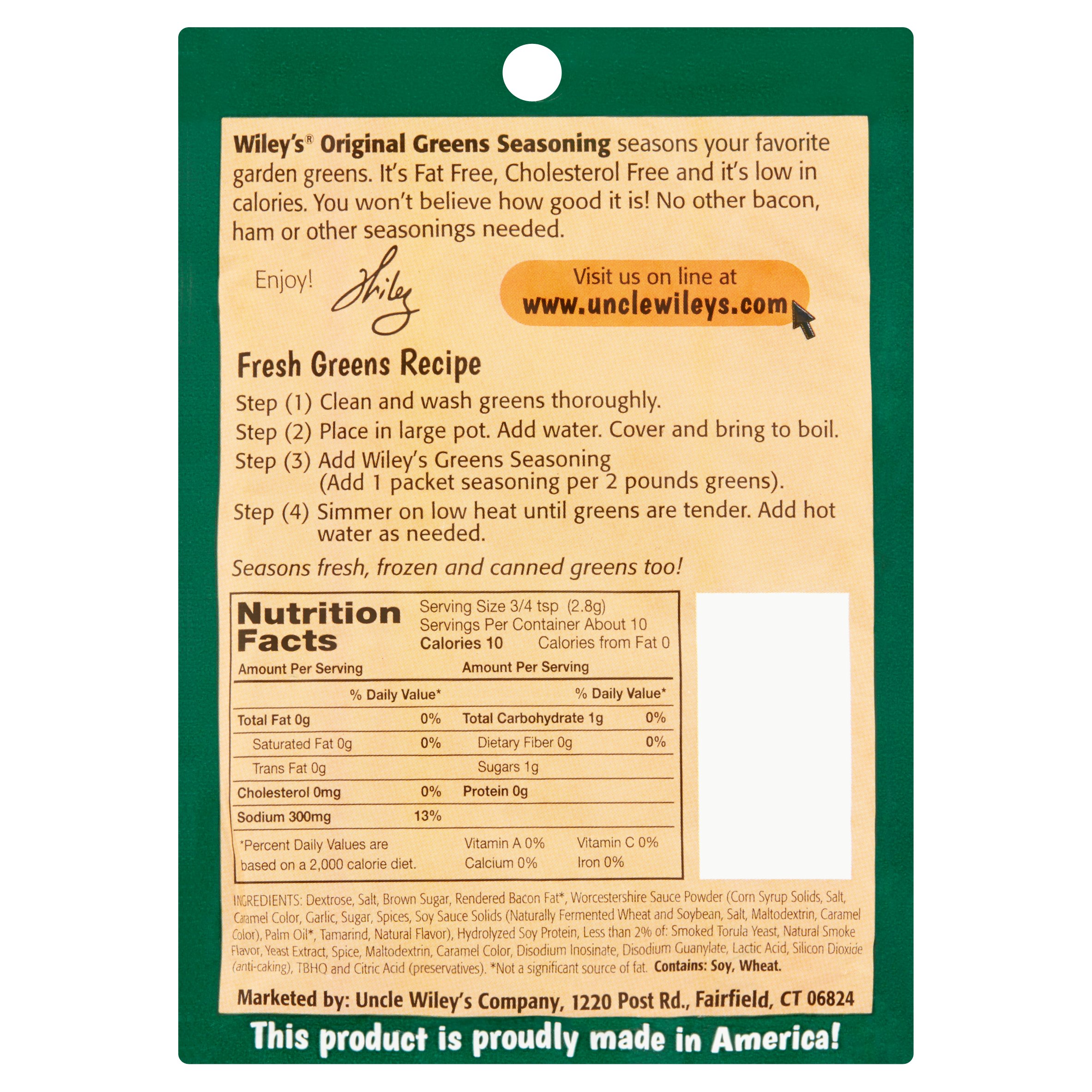 Greens seasoning walmart. All Departments Auto Tire Baby Beauty Books Cell Phones Clothing Electronics Food. Size1 Ounce Pack of 6 Wileys Greens Seasoning is a blend of natural ham and bacon flavorings that seasons all types of leafy green vegetables. Great marinade for Meats Poulty and Fish.